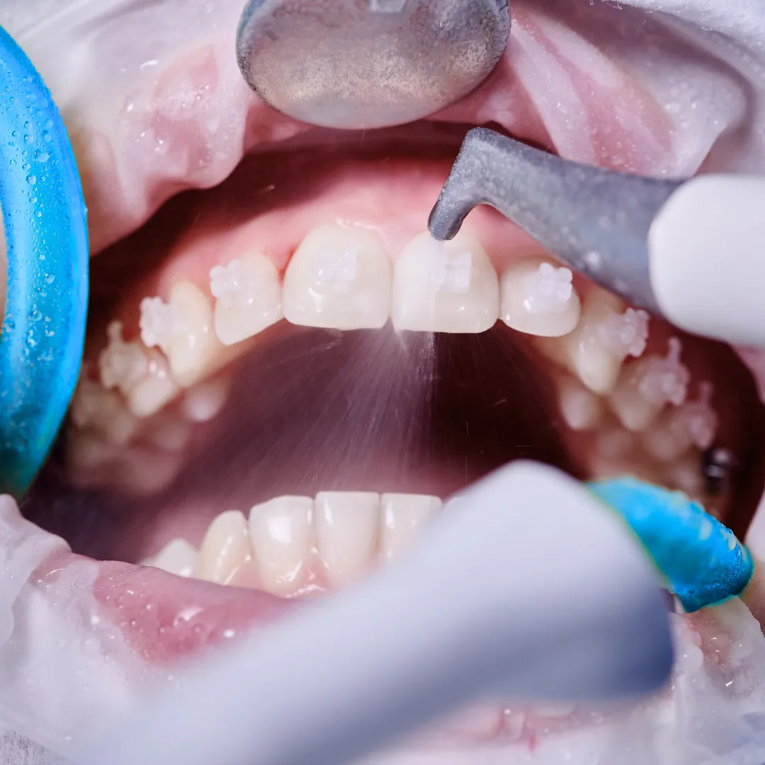 Airflow Cleaning This process uses a controlled stream of air, warm water, and fine powder to gently remove plaque, stains, and bacteria from above and below the gumline. It is a non-invasive, comfortable, and highly effective method for keeping teeth, gums, and implants clean and healthy.